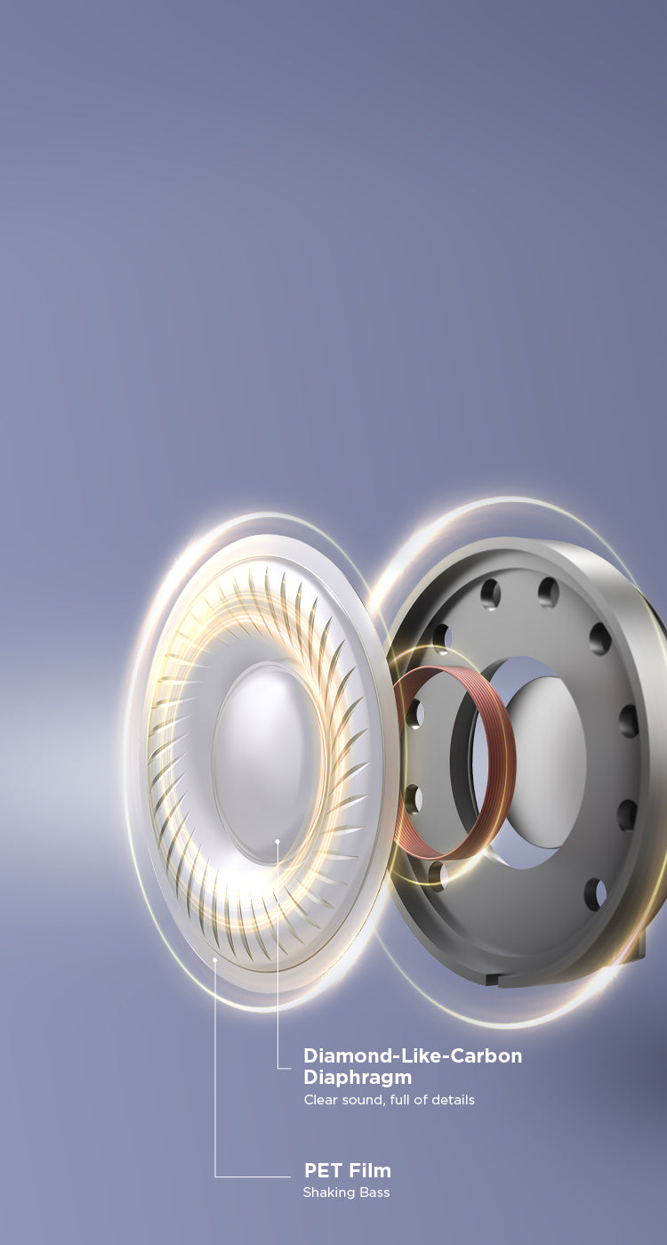 The SonoFlow SE noise cancelling headphones utilize a powerful 40mm dynamic driver with a diamond-like-carbon DLC composite diaphragm and PET film for deep bass, warm mids, and crisp highs. Enjoy your favorite music with exceptional clarity and detail.